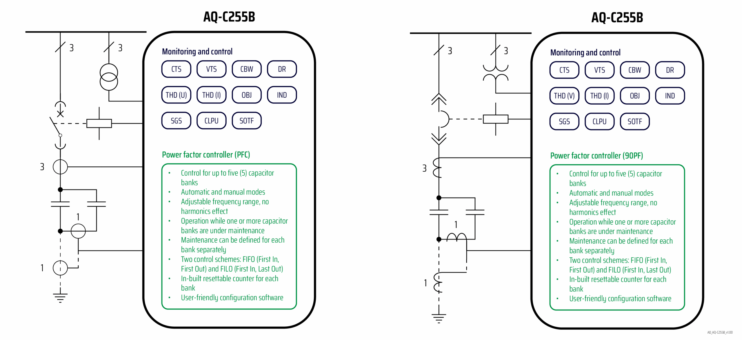 Home Protection relays Capacitor bank protection AQ-C255B Capacitor bank control and monitoring device