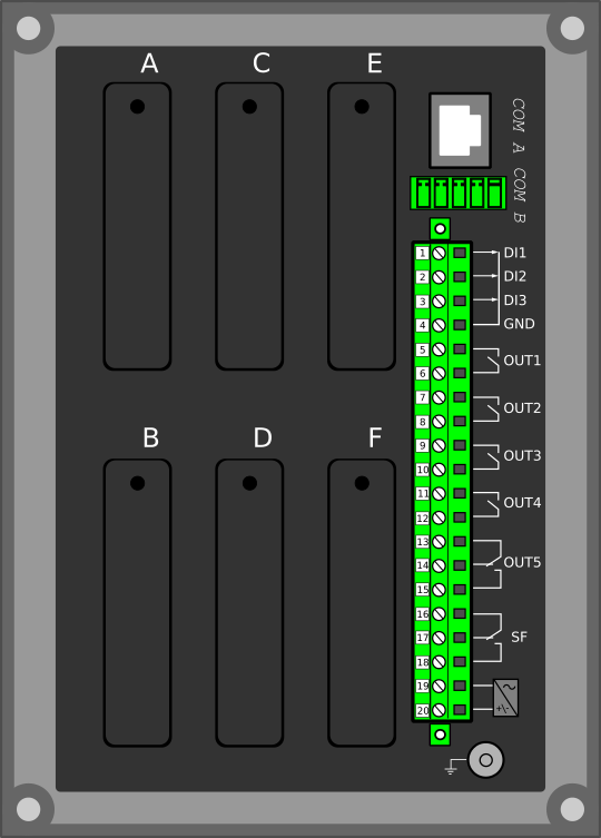 The AQ-S214 alarm and indication device can be applied to various substation tasks, such as extending the general I/O, sounding alarms, and control. You can add up to six (6) I/O or communication cards into the device, depending on the requirements of your application. The logic programming is powerful and easy to use. This also further expands the device’s application range towards more demanding control, alarm and indication needs. The HMI is large and can be freely programmed, and it provides a quick visualization of the object as well as the status of alarms and events. AQ-S214 communicates using various protocols, including communication according to the IEC 61850 standard.